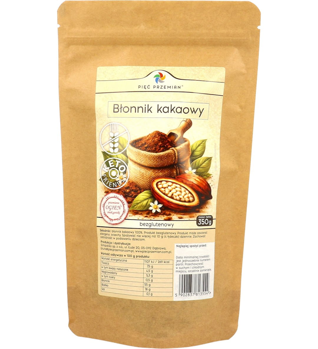 BŁONNIK KAKAOWY BEZGLUTENOWY 350 g - PIĘĆ PRZEMIAN