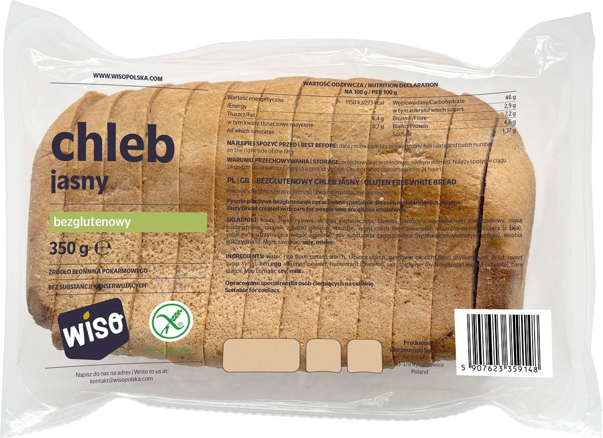 CHLEB JASNY KROJONY BEZGLUTENOWY 350 g - WISO