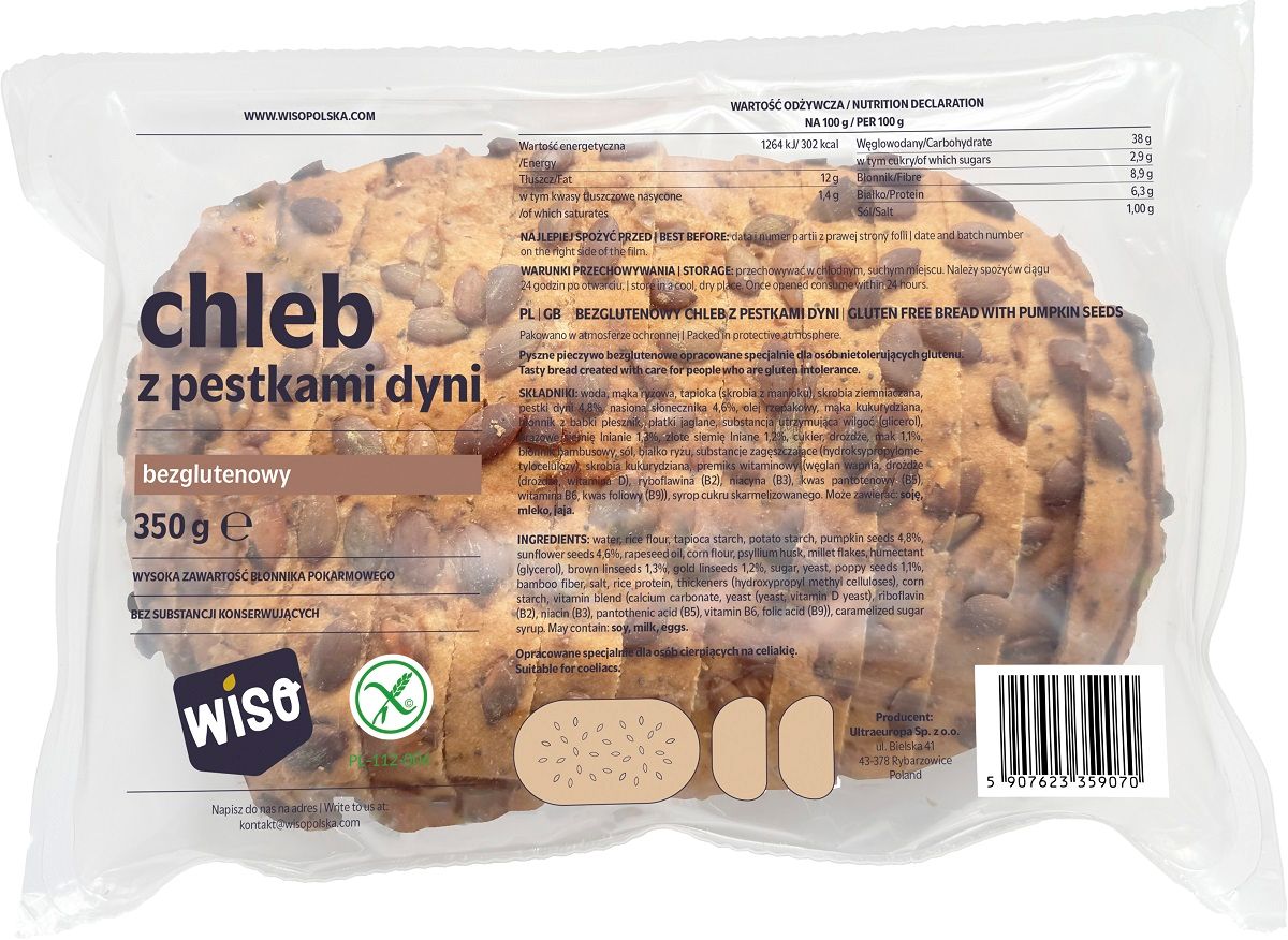 CHLEB Z PESTKAMI DYNI BEZGLUTENOWY 350 g - WISO