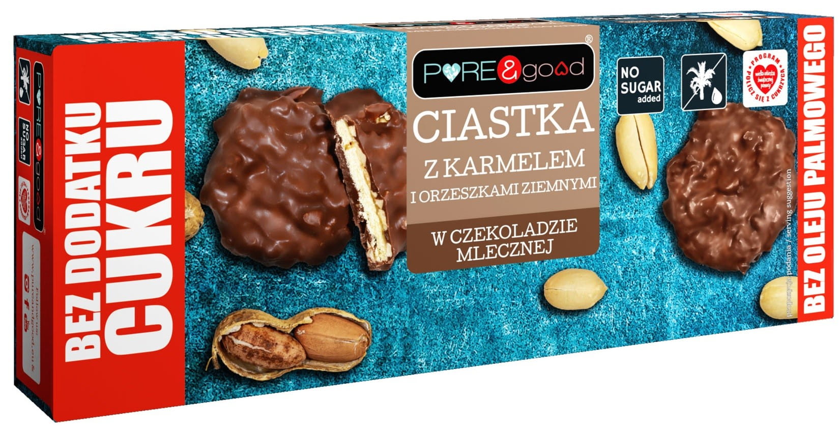 CIASTKA Z KARMELEM I ORZESZKAMI ZIEMNYMI W CZEKOLADZIE MLECZNEJ BEZ DODATKU CUKRU 128 g - PURE & GOOD
