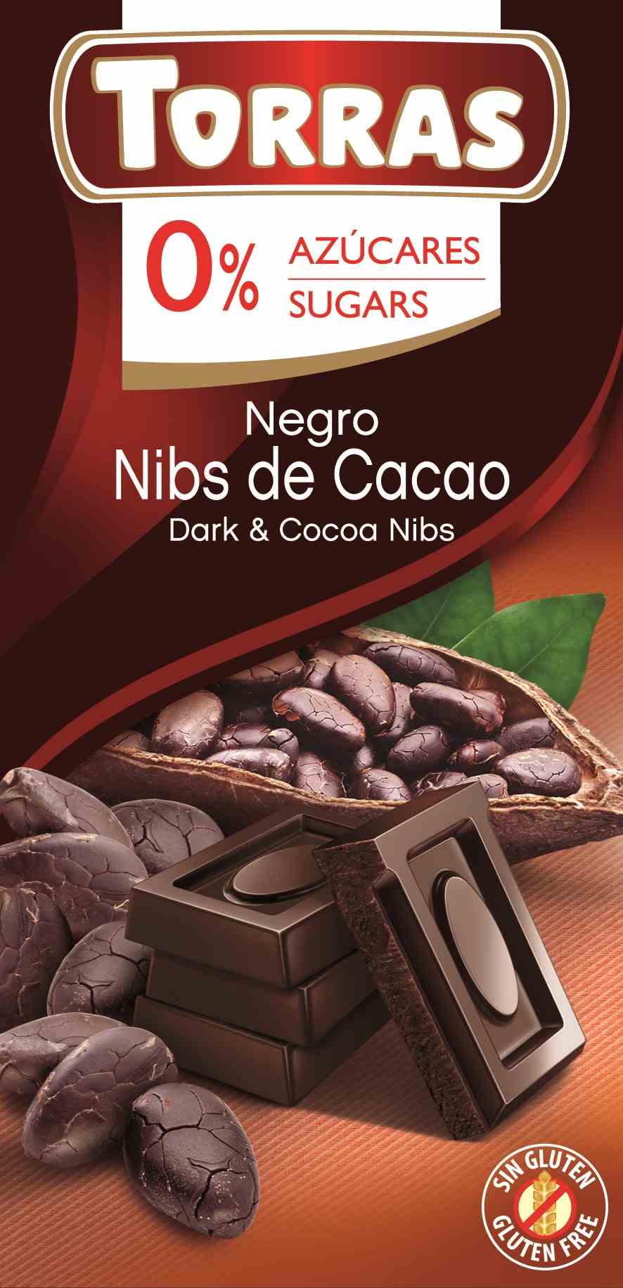 CZEKOLADA GORZKA Z ZIARNAMI KAKAO BEZ DODATKU CUKRU 75 g - TORRAS
