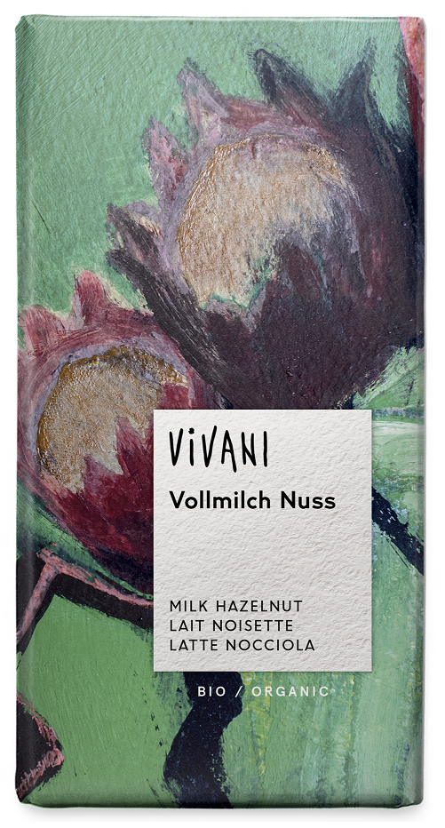 CZEKOLADA MLECZNA Z CAŁYMI ORZECHAMI LASKOWYMI BIO 100 g - VIVANI