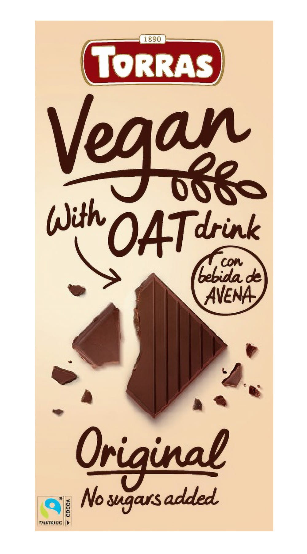 CZEKOLADA WEGAŃSKA Z EKSTRAKTEM OWSIANYM BEZ DODATKU CUKRU BEZGLUTENOWA 100 g - TORRAS