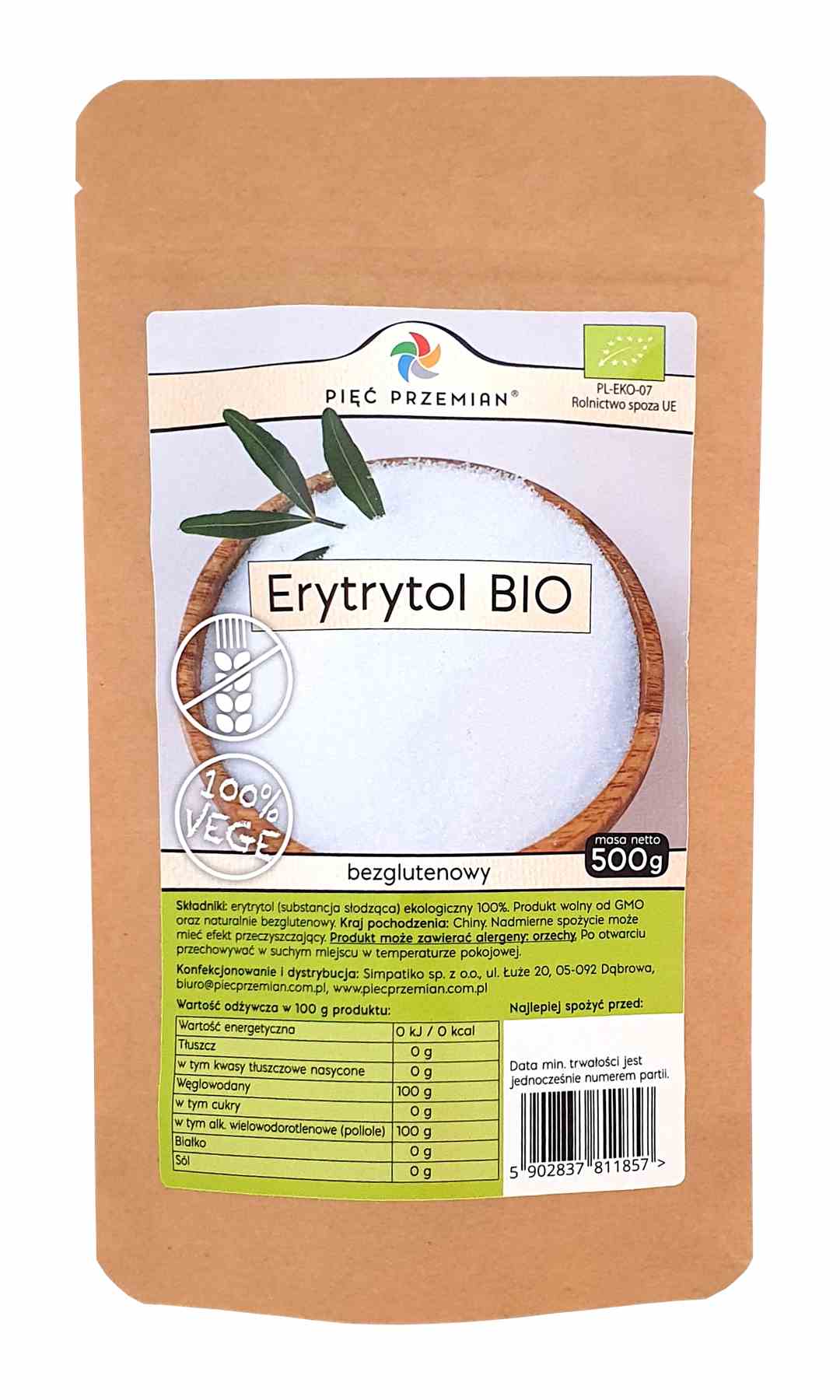 ERYTRYTOL BIO 500 g - PIĘĆ PRZEMIAN