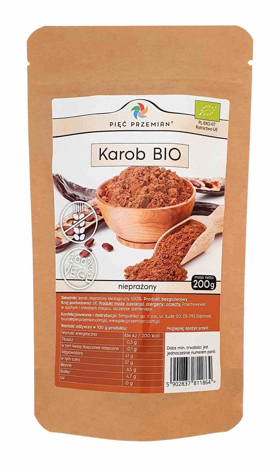 KAROB NIEPRAŻONY BEZGLUTENOWY BIO 200 g - PIĘĆ PRZEMIAN