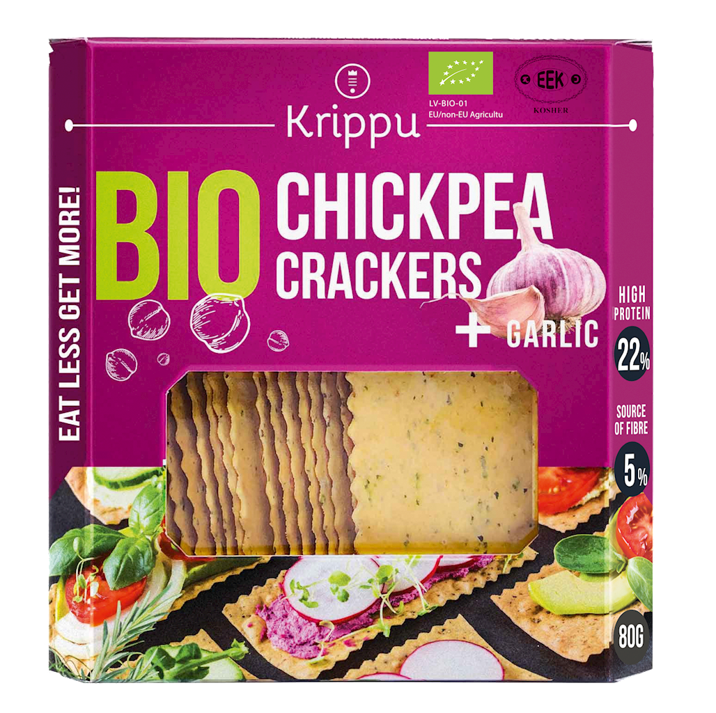 KRAKERSY PROTEINOWE Z CIECIERZYCY Z CZOSNKIEM BIO 80 g - KRIPPU