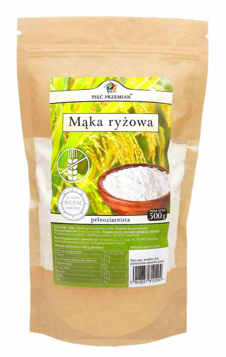 Mąka ryżowa pełnoziarnista bezglutenowa 500 g - Pięć Przemian