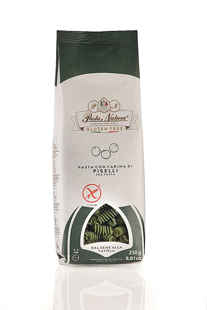 Makaron wyprodukowany z mąki z groszku zielonego. Dzięki wykorzystaniu najwyższej jakości składników oraz nowoczesnej technologii produkcji, makaron zachowuje sprężystość, kształt i kolor podczas gotowania.