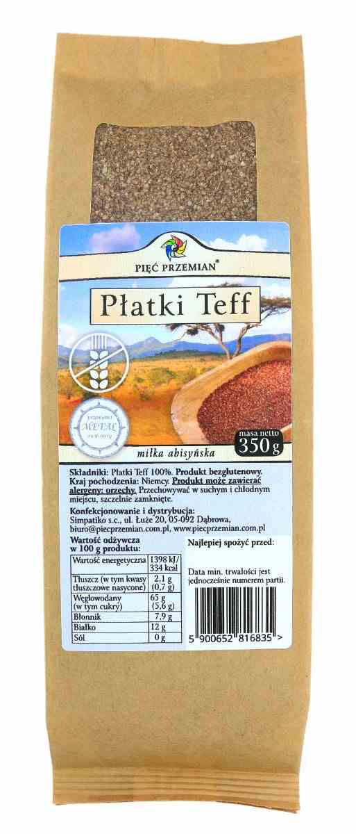 PŁATKI TEFF BRĄZOWE BEZGLUTENOWE 350 g - PIĘĆ PRZEMIAN