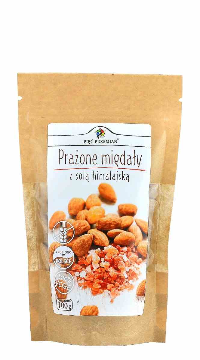 PRAŻONE MIGDAŁY Z SOLĄ HIMALAJSKĄ BEZGLUTENOWE 100 g - PIĘĆ PRZEMIAN