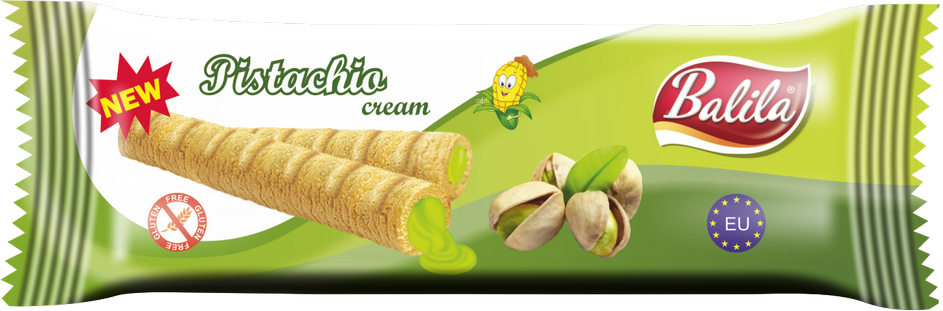 RURKI KUKURYDZIANE NADZIEWANE KREMEM O SMAKU PISTACJOWYM BEZGLUTENOWE 18 g - BALILA