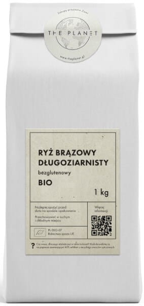 RYŻ BRĄZOWY DŁUGOZIARNISTY BEZGLUTENOWY BIO 1 kg - THE PLANET