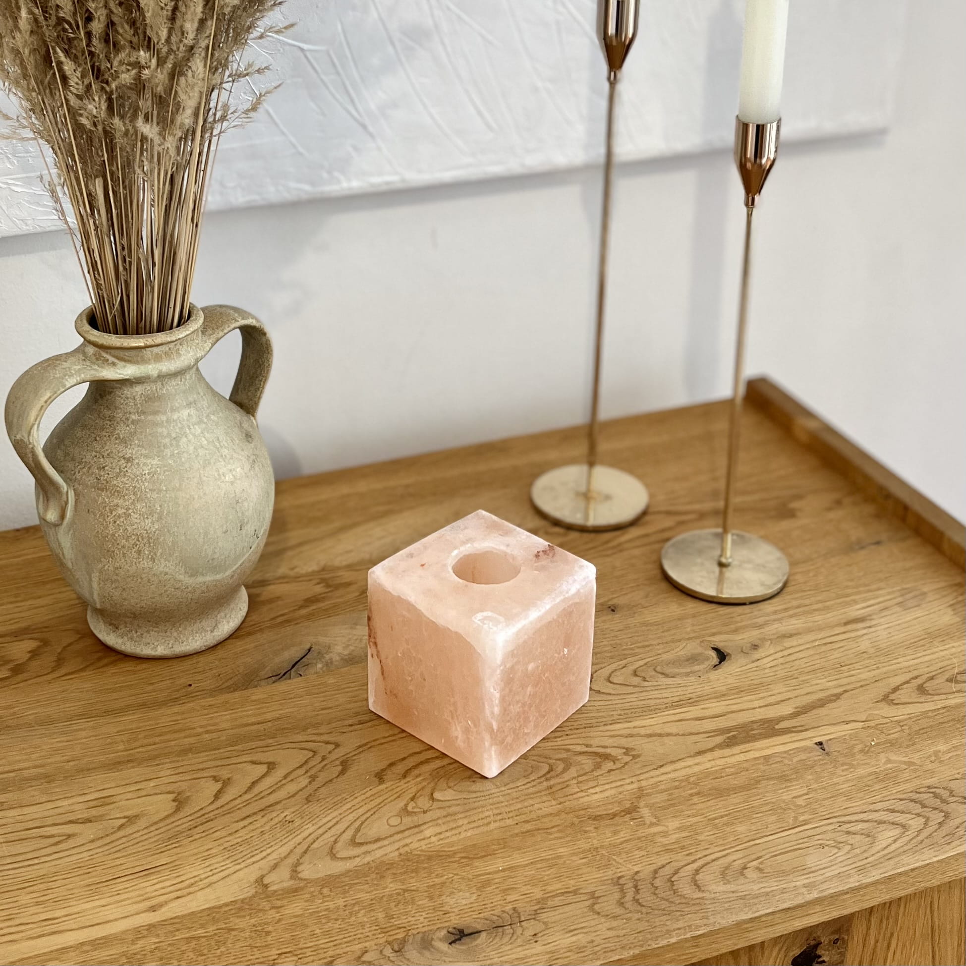 Oryginalny świecznik solny himalajski kwadratowy - naturalny jonizator powietrza