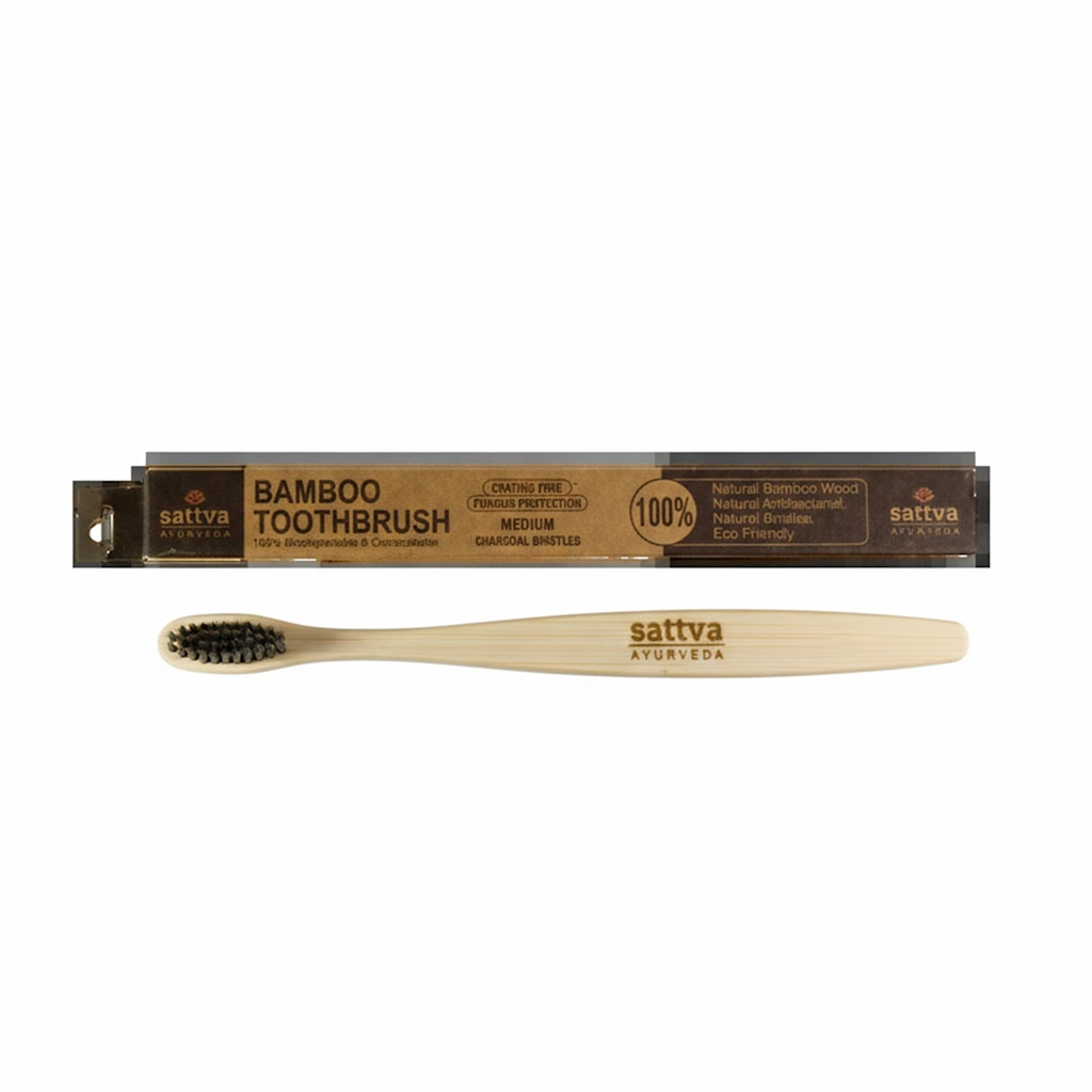 SZCZOTECZKA BAMBUSOWA DO ZĘBÓW ŚREDNIO TWARDA Z AKTYWNYM WĘGLEM - SATTVA (AYURVEDA)