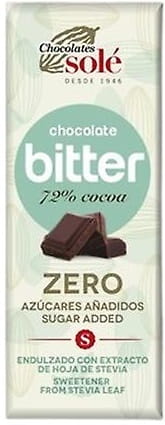 CZEKOLADA GORZKA 72% KAKAO BEZ DODATKU CUKRU SŁODZONA STEWIĄ BIO 25 g - SOLE