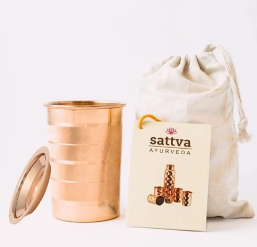 KUBEK MIEDZIANY STRIPE Z POKRYWKĄ 350 ml - SATTVA