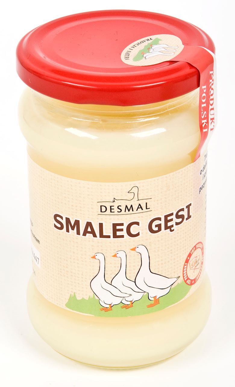 Smalec gęsi (smalec z tłuszczu sadełkowego) ze względu na wysoką zawartość (ponad 2/3) NNKT - niezbędnych nienasyconych kwasów tłuszczowych zalicza się do zdrowszych tłuszczów zwierzęcych. Przeważa tutaj jednonienasycony kwas oleinowy (podobnie jak w oliwie z oliwek), którego spożywanie zaleca się w profilaktyce przeciwmiażdżycowej. Jego właściwości są powszechnie znane; m.in. obniża poziom złego cholesterolu (LDL), nie zmniejszając poziomu dobrego cholesterolu (HDL). To głównie on powoduje, że smalec gęsi jest delikatnym tłuszczem i po przekroczeniu temperatury pokojowej staje się półpłynny. Temperatura dymienia to powyżej 200 stopni Celsjusza. Idealny do smażenia! Także do głębokiego.